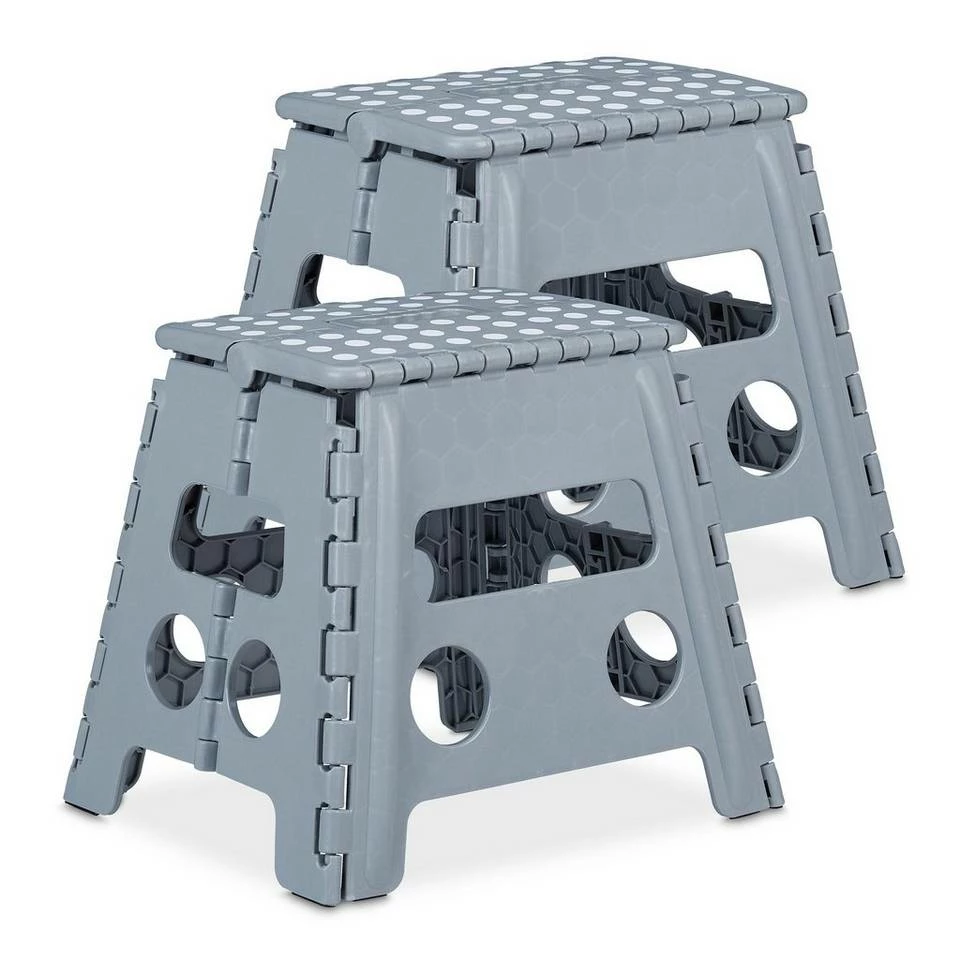 - 2er Set: 2x Klapphocker aus pflegeleichtem Kunststoff mit 32,5cm Höhe – Hellgrauer Haushaltshocker