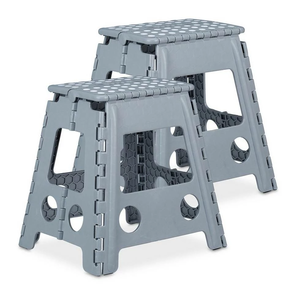 - Klappbar: 2x Klapphocker aus pflegeleichtem Kunststoff mit 39,5cm Höhe – Hellgrauer Haushaltshocker