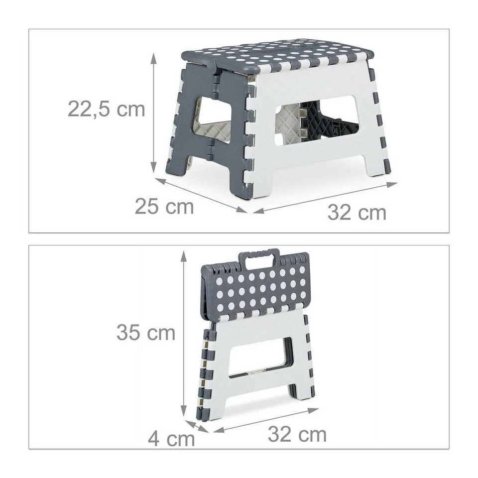 - Einstufig: 4 x Klapphocker als universelle Aufstiegshilfe im Haushalt – In grau-weißem Design