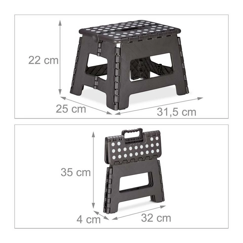 - Klappbar: Klapphocker in Dunkelgrau aus pflegeleichtem Kunststoff – 22 cm Höhe – Universell einsetzbar