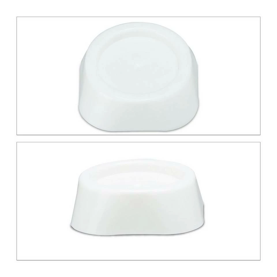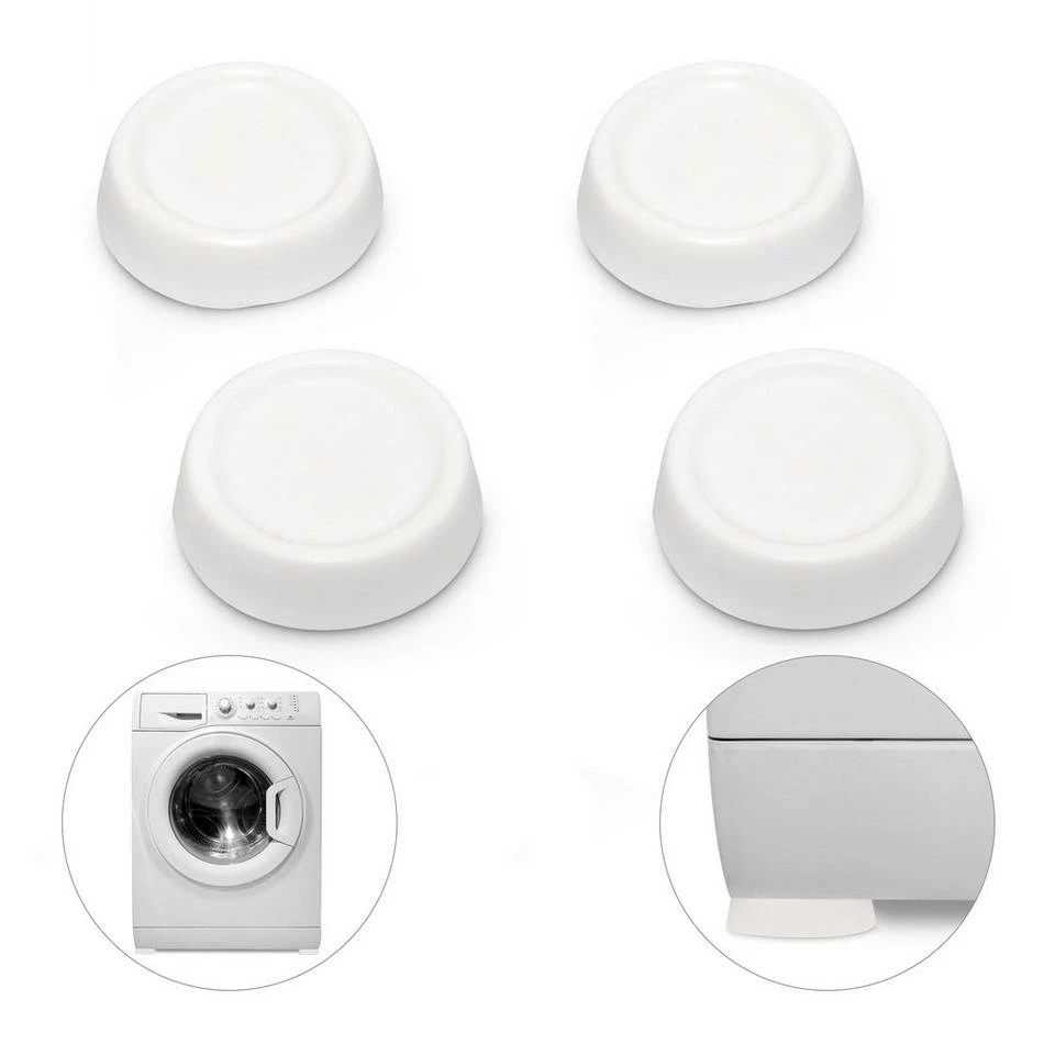 Vibrationsdämpfer absorbieren Schwingung & Lärm Waschmaschinen im Schleudergang können Ihre Wohnung ganz schön zum Beben bringen. Damit ist jetzt Schluss. Die praktischen Schwingungsdämpfer absorbieren die Vibration und senken den Geräuschpegel. So können Sie Waschmaschine und Trockner auch problemlos über Nacht laufen lassen. Die vier Helfer bestehen aus weichem, schwingungsabsorbierendem PVC. Stellen Sie Ihr Gerät mit allen vier Füßen auf jeweils einen der Schwingungsdämpfer. In der Mitte jedes Unterlegers ist eine Kuhle eingearbeitet, die ein Verrutschen der Waschmaschinenfüße verhindert.