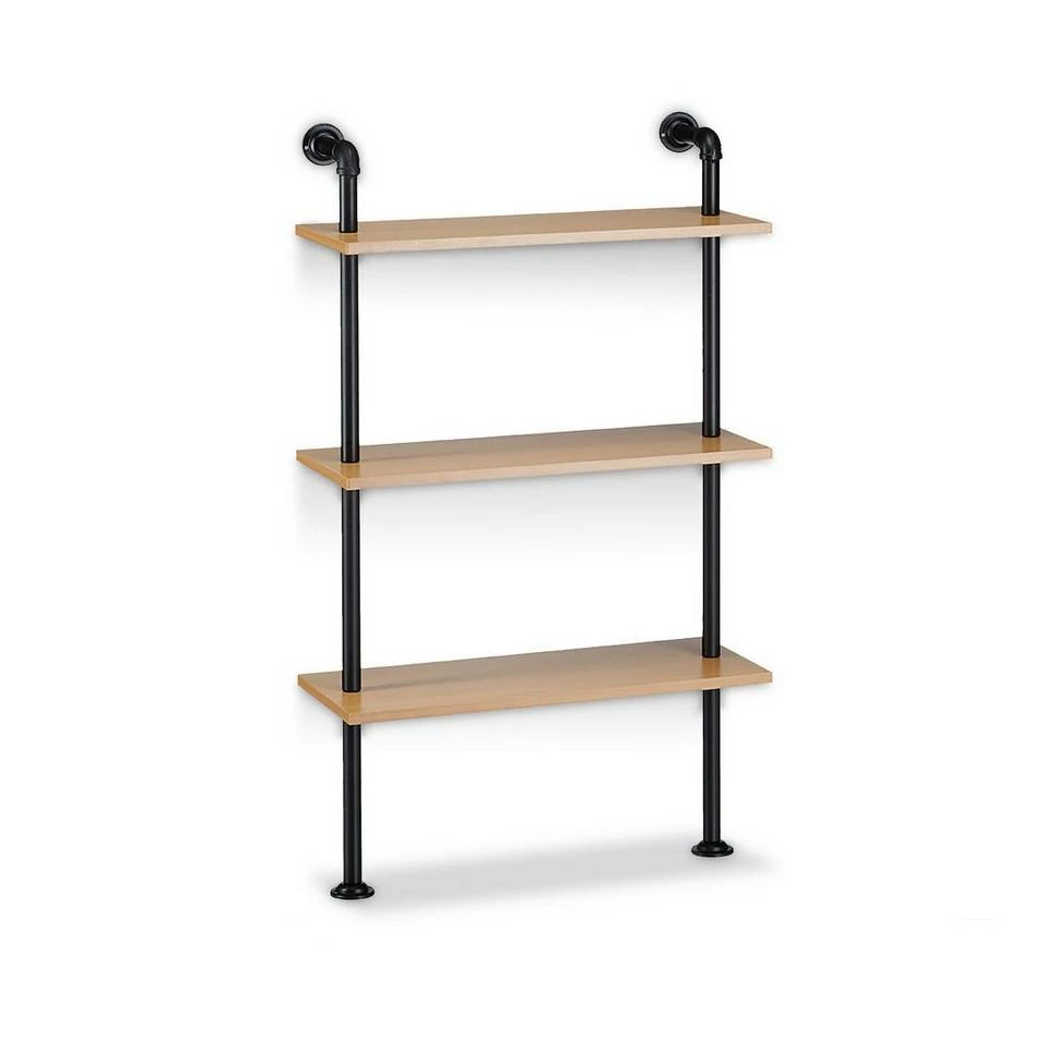 Wandregal im schicken Industrie-Stil Mit diesem großen Wandregal im Retro-Design schaffen Sie wertvollen Stauraum für verschiedene Räume wie Küche, Wohnzimmer oder Schlafzimmer. Der rustikale Materialmix aus Holz und Eisenrohren wird schnell zum wahren Hingucker. 3 großzügige Ablagen sorgen für ausreichend Stauraum für CDs, Bücher und vieles mehr. Dank des mitgelieferten Montagematerials ist das stylische Wandboard im Vintage-Stil mit nur wenigen Handgriffen angebracht. Dazu überzeugt das Regal auch als Deko-Accessoire in Lofts, Bars oder einem trendigen Café.