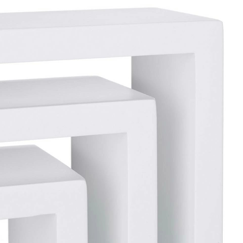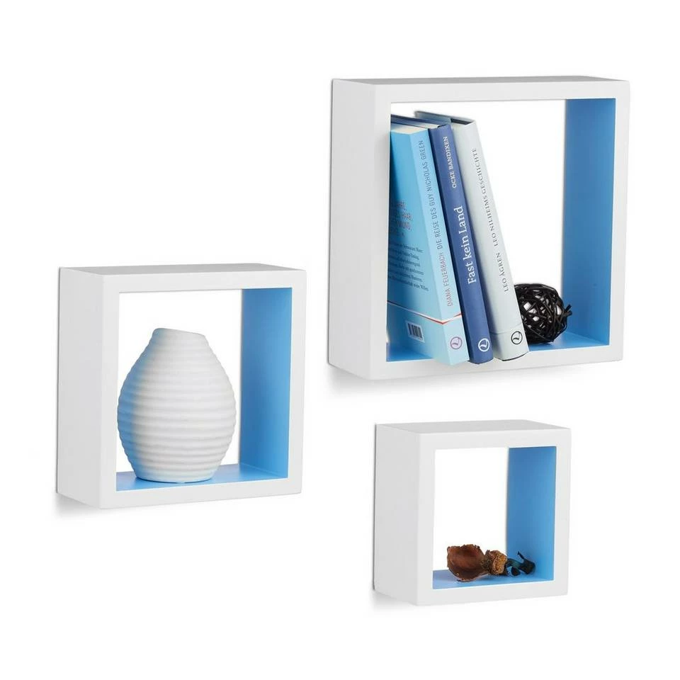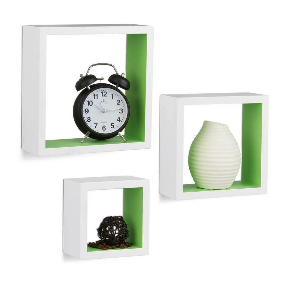 Cube Schweberegale für anregend gestaltete Wände Sie möchten Ihren humorlosen Wänden eine spielerische Note verleihen? Das 3er Set besteht aus quadratischen Hängeregalen in verschiedenen Größen, die Sie nach Lust und Laune anbringen können. Die Montage gestaltet sich dank der jeweils bereits eingearbeiteten Aufhängungen sehr einfach. Auch an die erforderlichen Schrauben und Dübel ist gedacht. Wir bieten mehrere Farbvariante zur Auswahl, sodass Sie die optimale Lösung für sich finden. Mit den Wandboards präsentieren Sie DVDs, Vasen, Kuscheltiere uvm. auf angenehme Weise und sparen darüber hinaus Platz.