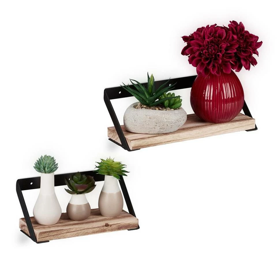 - Material: Hängeregale aus Paulownia-Holz mit edler Maserung – Stabile Halterung aus schwarzem Eisen