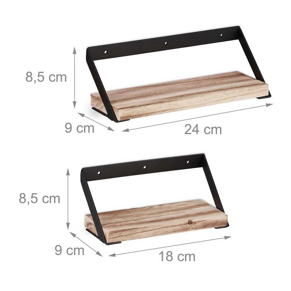 Hängeregal für Bilderrahmen, Vasen und mehr Sorgen Sie mit diesem Schweberegal 2er Set im Industrial Design für einen rustikalen Look in Ihrem Zuhause. Die Holzregale besitzen 2 verschiedene Größen und können nach belieben mit der unterschiedlichsten Dekoration bestückt werden, z.B. Bilderrahmen, Blumenvasen, Kerzen, Bücher, etc. Das Hängeregal besteht aus Paulownia-Holz und besitzt eine stabile Eisenhalterung für einen sicheren Halt. Beim Lieferumfang sind Schrauben und Dübel für eine sofortige Montage mit inbegriffen.