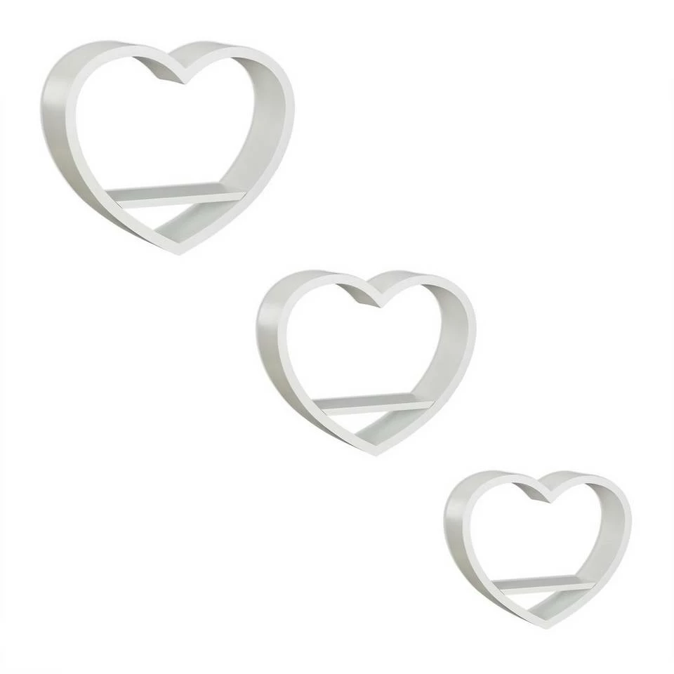 - Mit Herz: Romantische Wandregale in Herzform – Dekorative Schweberegale im 3er Set – Herzförmige Regale mit Ablagefläche in 3 Größen