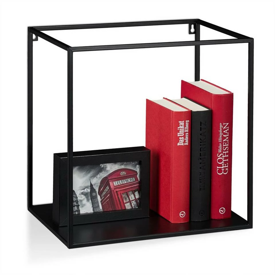 Dekoratives Cube Regal aus Eisen Verschönern Sie mit dem quadratischen Schweberegal die Wände in Ihrem Zuhause. Das moderne Design im Industrie Stil passt perfekt zu modern eingerichteten Wohnzimmern, Lofts oder Schlafzimmern. Kleine Accessoires, Bilder des letzten Urlaubs, der Hochzeit oder von Familienfeiern, aber auch Pflanzen oder Andenken können auf der Wandablage stilvoll in Szene gesetzt werden. Dank der offenen Form sind die Dekoelemente von allen Seiten sichtbar.