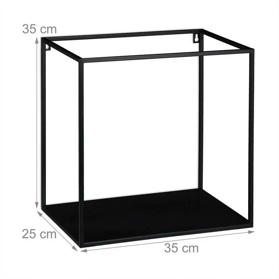 - Basics: Schweberegal aus schwarzem Eisen – Maße gesamt HBT: ca. 35 x 35 x 25 cm – Traglast: ca. 5 kg