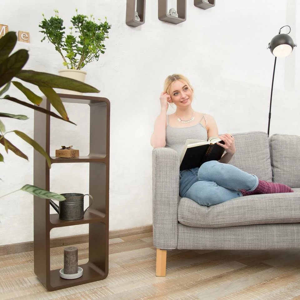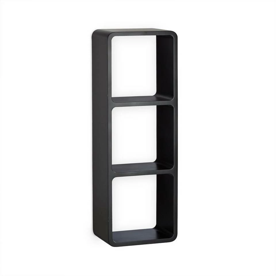 Dekoratives Wandregal mit 3 Fächern Egal ob Sie eine leere Wand verschönern wollen oder mehr Stauraum benötigen – Mit dem variablen Wandregal stehen Ihnen alle Möglichkeiten offen. Hängen Sie das freischwebende Wandregal mit unsichtbarer Aufhängung vertikal oder senkrecht auf. Auch als Standregal bietet sich das massive Regalgestell an. Die abgerundeten Ecken und Cube-förmigen Fächer schaffen ein modernes Design, welches durch die Farbauswahl besonders extra in Szene gerückt wird. Das sonst schlichte Schweberegal bietet Ihren Büchern, CDs und Bilderrahmen ausreichend Platz.