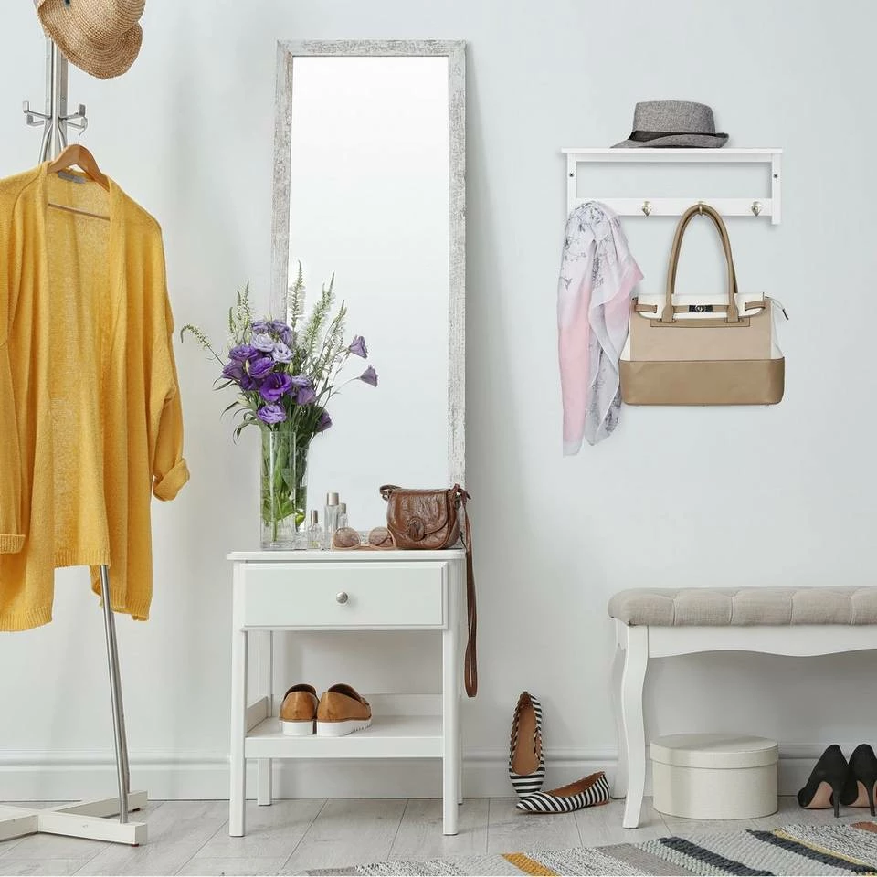 Wandregal mit Hakenleiste Dieses kleine Regal aus Bambus ist ein wahrer Vielkönner. Das Schweberegal ist ein zuverlässiger Komplize in Bad, Küche oder Keller, wenn Sie zusätzlichen Stauraum für Kosmetika, Küchenutensilien, Dekoartikel uvm. benötigen. Das Hängeregal besteht aus Bambus, einem sehr feuchtigkeitsbeständigem und robustem Material. Neben der praktischen Ablagefläche ist auch die Hakenleiste mit den 4 Haken vielfältig einsetzbar. Ob Sie nun einen Handtuchhalter oder eine Wandgarderobe für den Flur suchen: Die Wandmontage vereinigt beide Talente in sich. Das erforderliche Montagematerial für den schnellen Aufbau ist bereits Teil des Lieferumfangs.