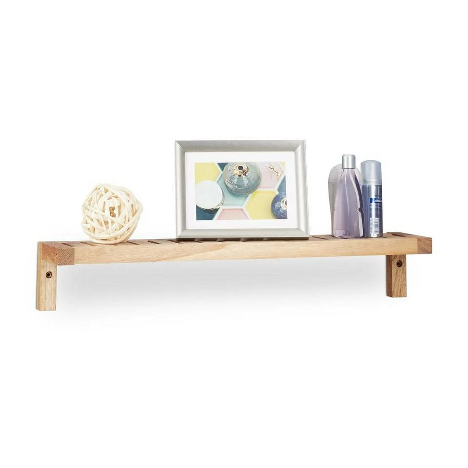 Wandregal mit rechteckiger Ablagefläche Dieses Holzregal macht sich überall gut, ob Sie es nun in Bad, Küche, Wohn- oder Kinderzimmer hängen möchten. Die natürliche Optik des gemaserten Walnussholzes ist ein absoluter Blickfang. Die rechteckige Ablagefläche ist vielseitig nutzbar – Egal ob in Bad, Küche, Flur oder Kinderimmer. Um die Wandablage schnell aufzubauen, greifen Sie einfach zu den mitgelieferten Schrauben und dem Werkzeug. Die Löcher für die unkomplizierte Wandmontage sind bereits gebohrt.