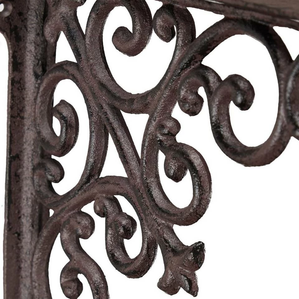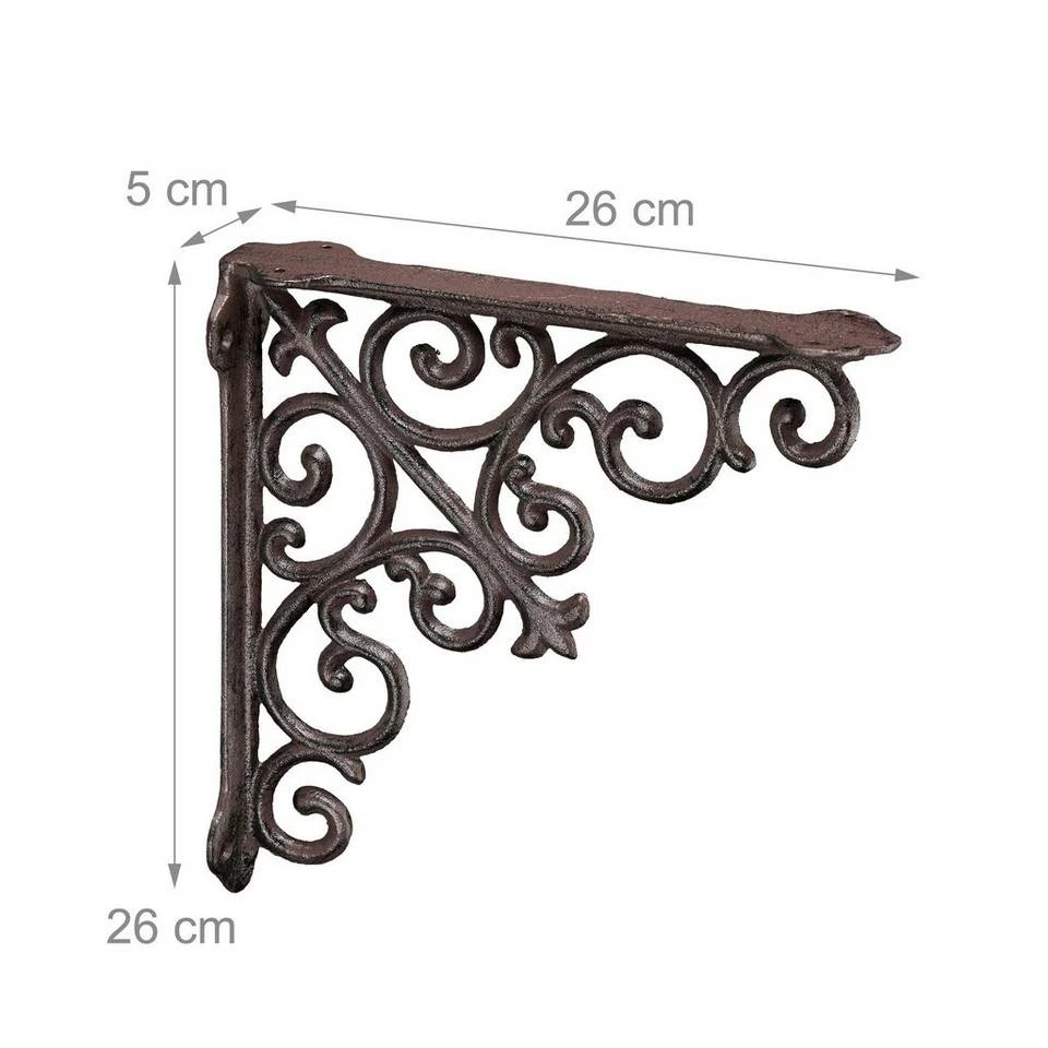 Regal Winkelträger im angesagten Vintage-Stil Die antiken Regalträger im 4er Set sind nicht nur eine Auflage für Regalbretter, sondern zugleich ein dekoratives Highlight. Mit ihnen wird jeder Regalboden zum ausgefallenen Blickfang. Geschwungene Ornamente im Barock-Stil verbinden beide Streben der Stegkonsolen und versprühen nostalgischen Charme. Gefertigt aus massivem Gusseisen können die rustikalen Winkel Wandhalterungen auch im geschützten Außenbereich zum Einsatz kommen und Balkon oder Gartenhütte schmücken.