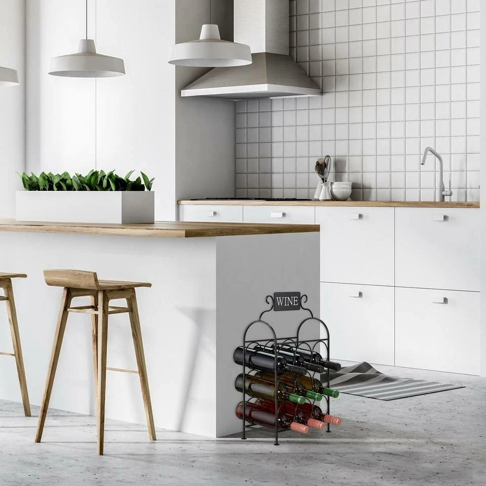 - Stabil: Das schwarze Flaschenregal besteht aus robustem Eisen steht trotz schlanken Designs stabil