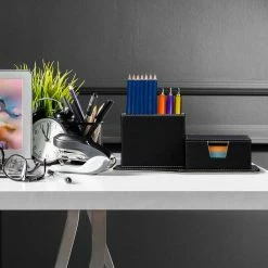 relaxdays Schreibtischaufsatz »Schreibtisch Organizer Set 5-teilig«, (5-St), Schwarz
